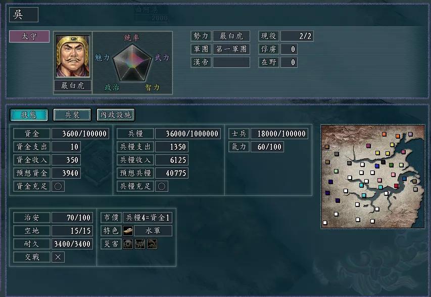 然后建一点内政,再快速解盟王朗,消灭其,王朗有许靖、华歆、虞翻等高政治的文臣,会稽和吴郡有很多江东猛将在野,贺齐、董袭、严畯、朱桓、朱然、诸葛瑾、徐盛、徐氏、凌操这些人都是在198年之前出山的,而且这些武将水军基本都是S级,占据江东三郡后,谁也别想灭了严白虎,全部葬身于长江。